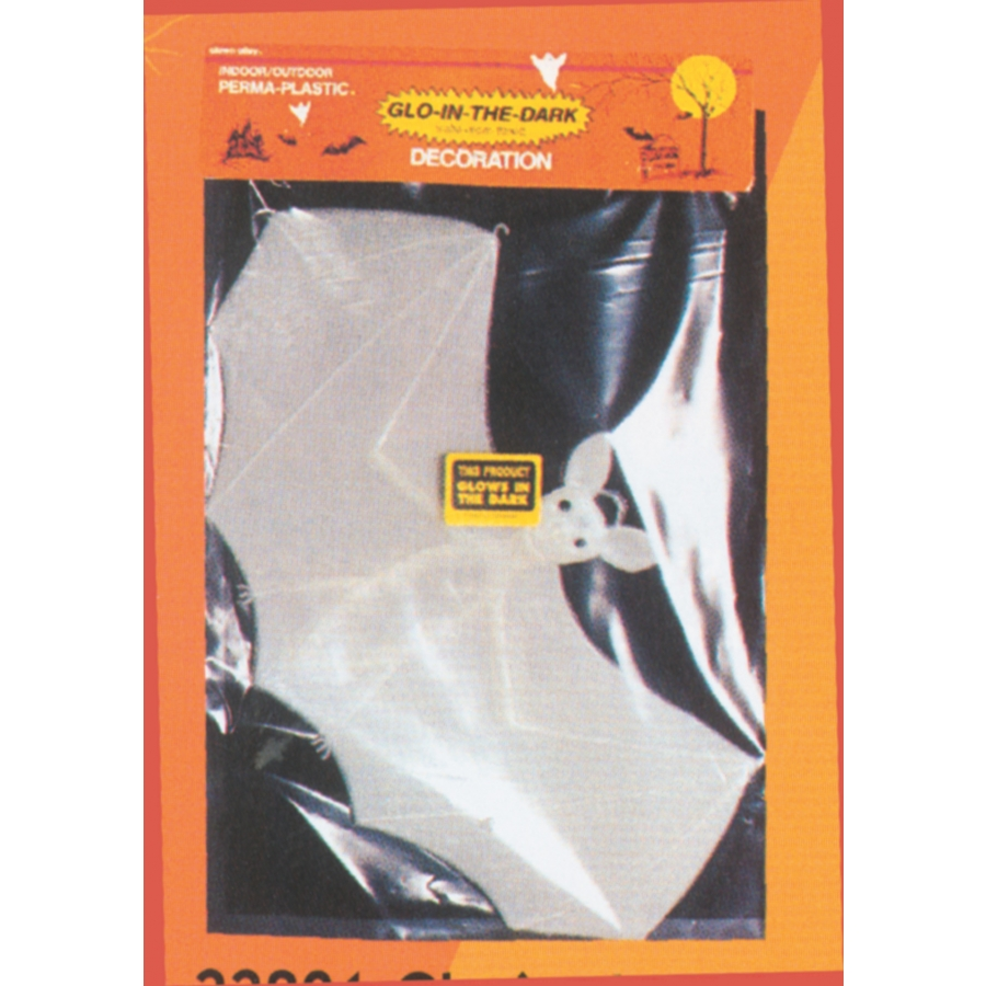 BAT 18in PLASTIC GLOW. Friendly but formidable glow-in-the-dark bat made of durable, lightweight plastic. 9 inches tall and 18 inches wide.
