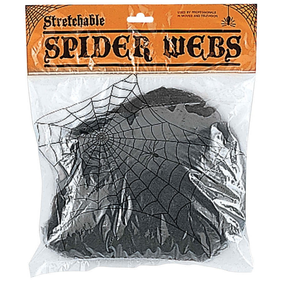 BLACK WEB. Black spider webbing in a pack. Many uses but perfect for decorating your haunted house! Stretches.