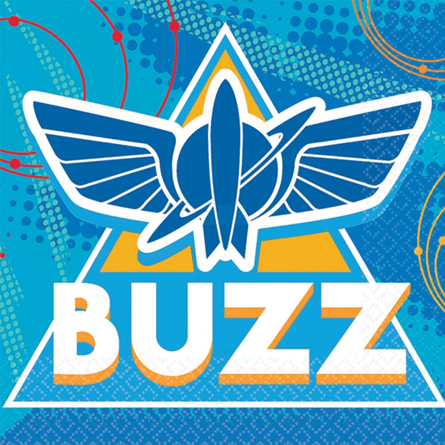 DISNEY TOY STORY BEV NAPKI. Buzz Lightyear is the bravest space ranger in all the galaxy. Your little Toy Story fanatic will be thrilled to see his favorite character on these festive napkins! These pieces feature the logo for Buzz’s elite space team Star Command. 16 napkins to a package.