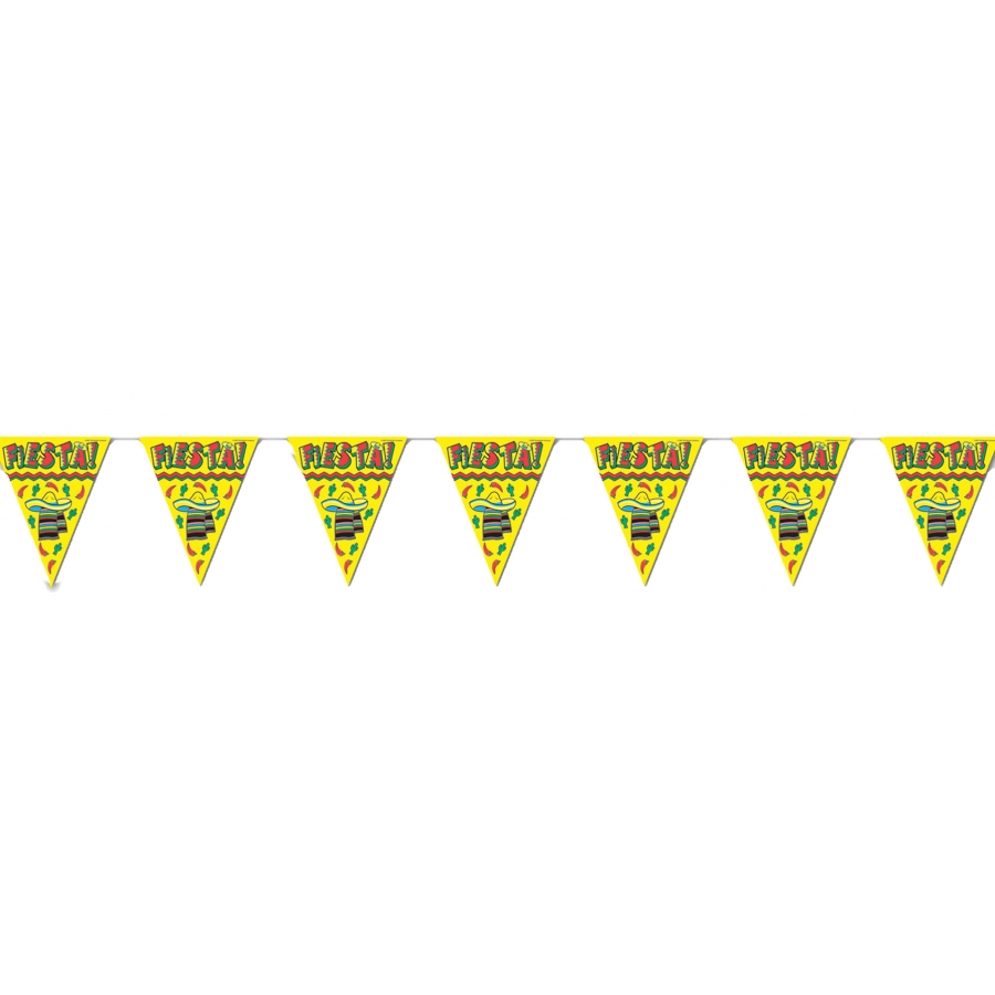 FIESTA! PENNANT BANNER. A fun banner perfect for any Cinco De Mayo celebration or any Latin-themed event! Polyethylene. 12 pennants to a string. 10in. x 12ft. Usable indoors or outdoors.