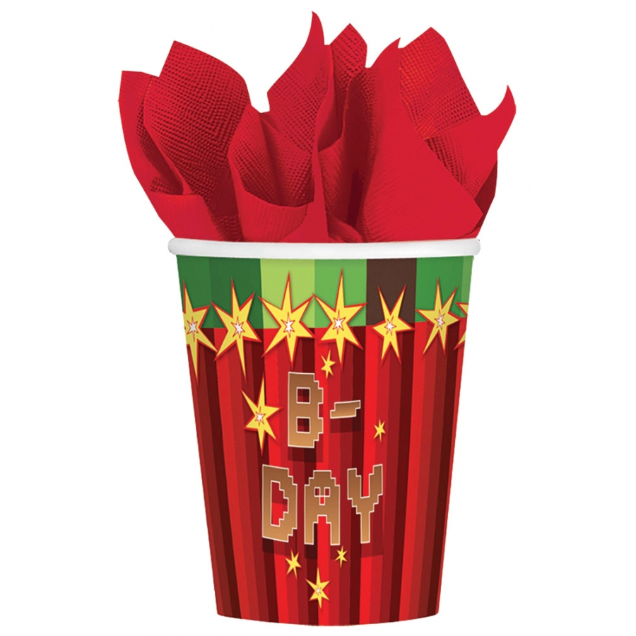MINECRAFT CUPS 9OZ 8 PACK. The Minecraft Cups Package includes (8) paper cups to match your party theme. Cups are versatile enough to serve warm or cold beverages. Each holds 9 fl. oz.