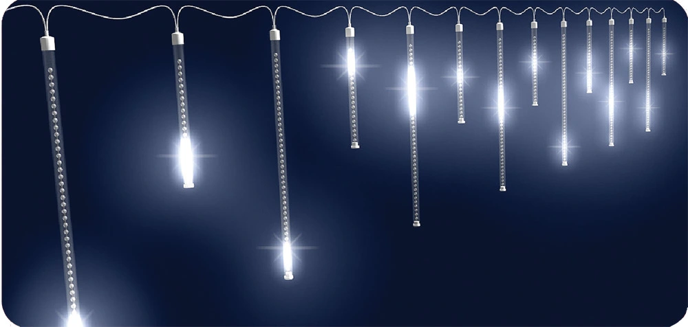 Great for Christmas home decorating! LED Lighting, White colored lights with 128 LED, 1/2″ x 8.5″ (12 LED) amd 1/2″ x 13.5″ (20 LED) tubes alternate, 30″ lead wire/12″ spacing, 7 ft lighted length, 5V UL adapter included.